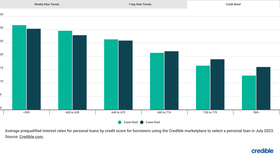 Here are the latest trends in personal loan interest rates from the Credible marketplace, updated weekly.