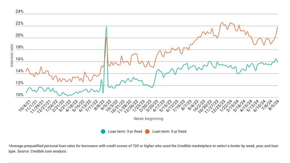 Borrowers with good credit seeking personal loans during the past seven days prequalified for rates that were lower for 3-year loans and higher for 5-year loans when compared to fixed-rate loans for the seven days before.