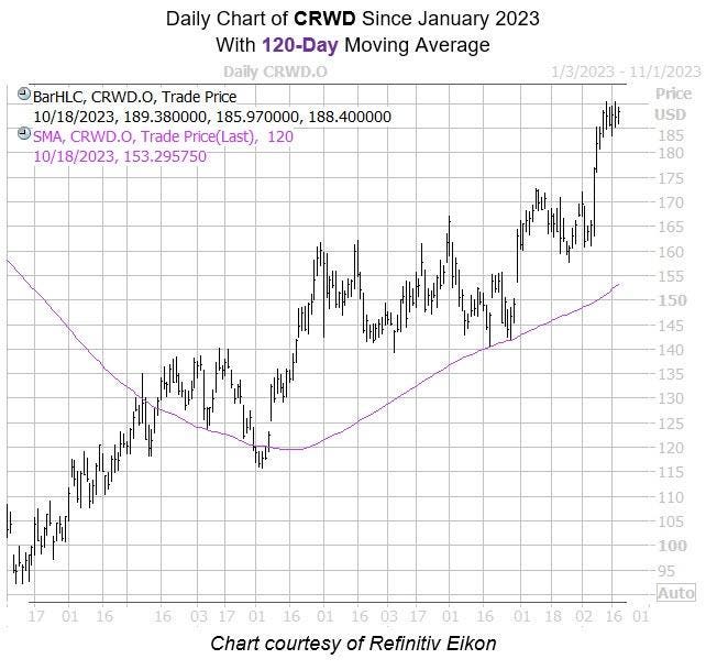 IT giant Crowdstrike (CRWD) has been enjoying performing within a channel of higher lows for the duration of 2023, now boasting a lead of nearly 80% for this time frame. This long-term rebound came off the equity’s early January lows, with added support at the 120-day moving average. Further gains could be on the horizon too, with a historic bull signal now flashing on CRWD.