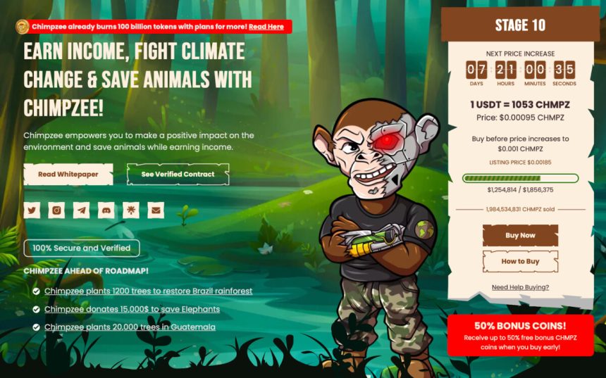 The Chimpzee presale will move to the eleventh stage in one day. The presale has crossed the $1.25M milestone after witnessing huge community support over the last few days.