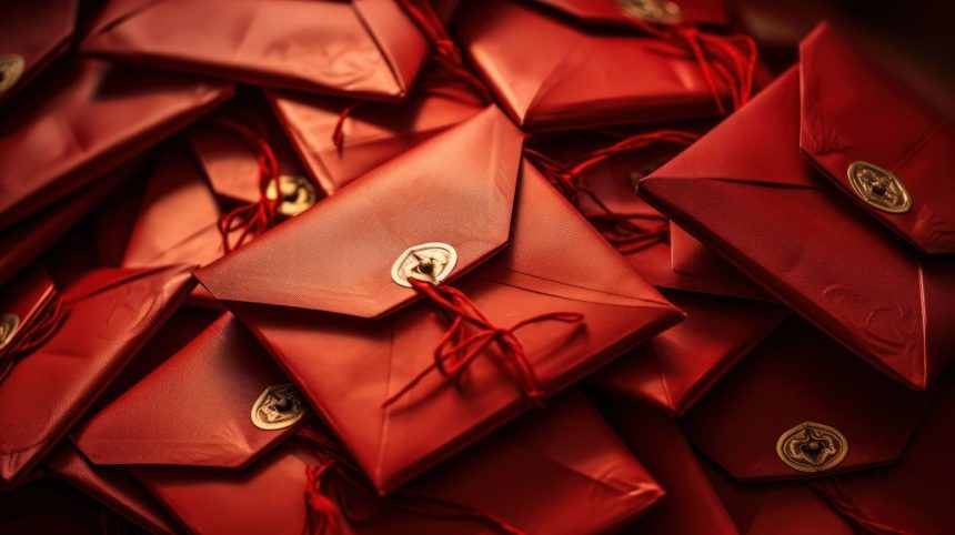 In China, red is considered a luck-bestowing color. Chinese tradition dictates senior family members and firms must give money to children and employees in red envelopes at the year’s end, ahead of the Lunar New Year.